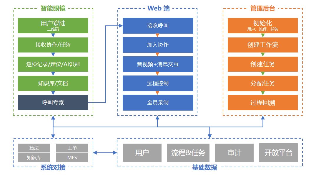 大型工业生产协作普遍存在规模大、跨区域、设备复杂、专家资源不足等难题,而利用 AR 增强现实和通信技术,可为前线人员提供一个现场可视化作业空间,实现物理和数字对象的虚实融合。