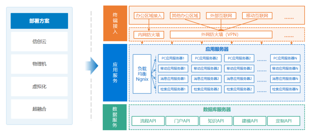 ☑ 多种部署方式,信创云、物理机、虚拟化、超融合等部署模式,满足不同客户的部署要求。