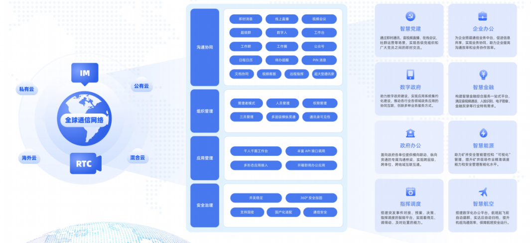 融云数智办公产品沉淀自其多年的协同办公领域实践,拥有高并发、高可用,组件灵活、安全可信等产品优势及完整的信创适配生态,已经在政府及公共事业、公安军工、金融保险、交通、能源电力等行业广泛落地。