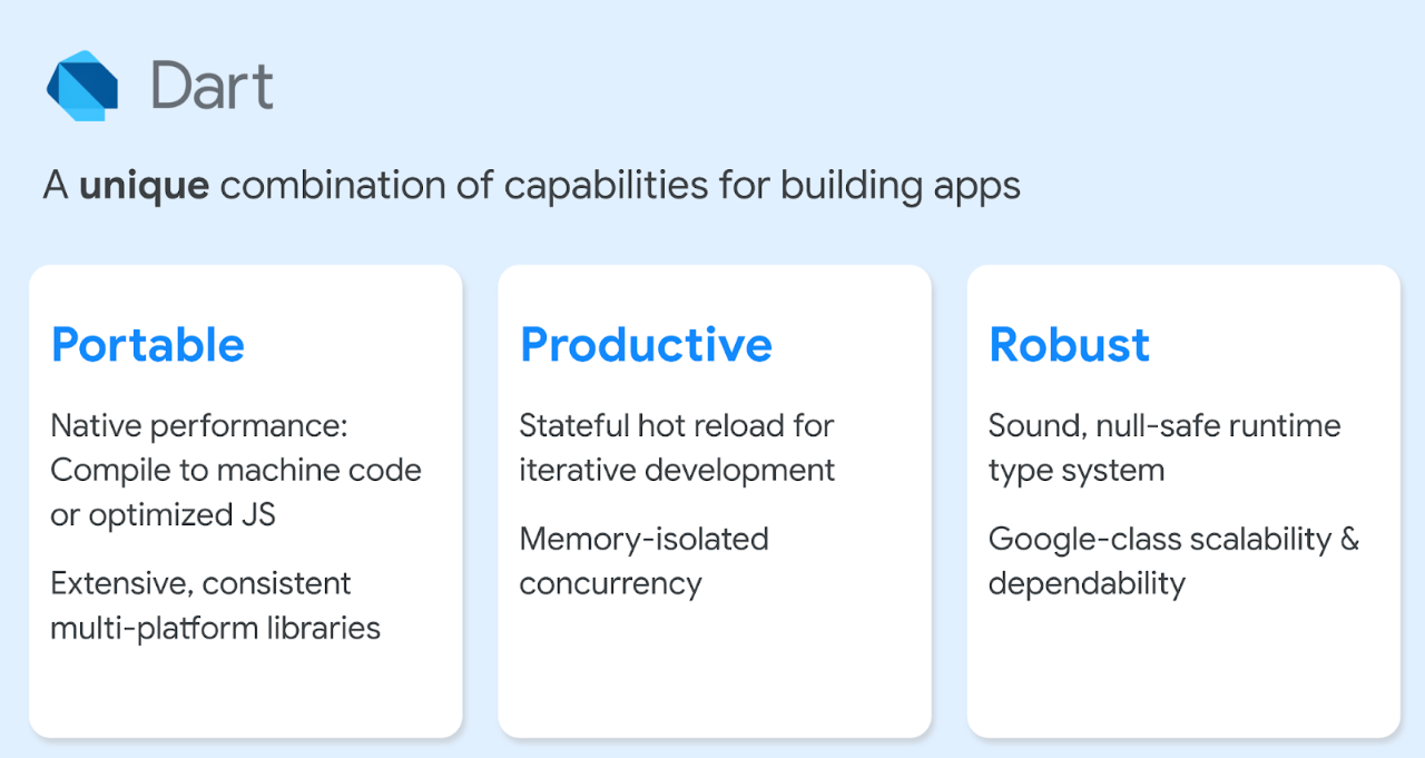 Dart 的独特功能涵盖三个方面: