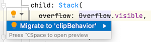 除了以上两点非常重要的更新之外,flutter 2.0 还增加了很多新的 widget,还修改了不少老的 api,对于这点,flutter 提供了迁移工具 flutter fix。Dart CLI 工具添加了一个新的命令行选项,名为 dart fix,它可以识别出你当前的代码迁移到 flutter 2.0 需要进行哪些更改。你可以通过 dart fix –dry-run 来查看所有需要修复的代码,然后通过 dart fix –apply 来进行应用修复。但是这里我们并不推荐你这么做,因为自动迁移针对于 plugin 的项目很有可能会出问题,这里还是推荐在 IDE 中,根据 IDE 的提醒,来逐步进行修改,背后应用的机制是一样的。