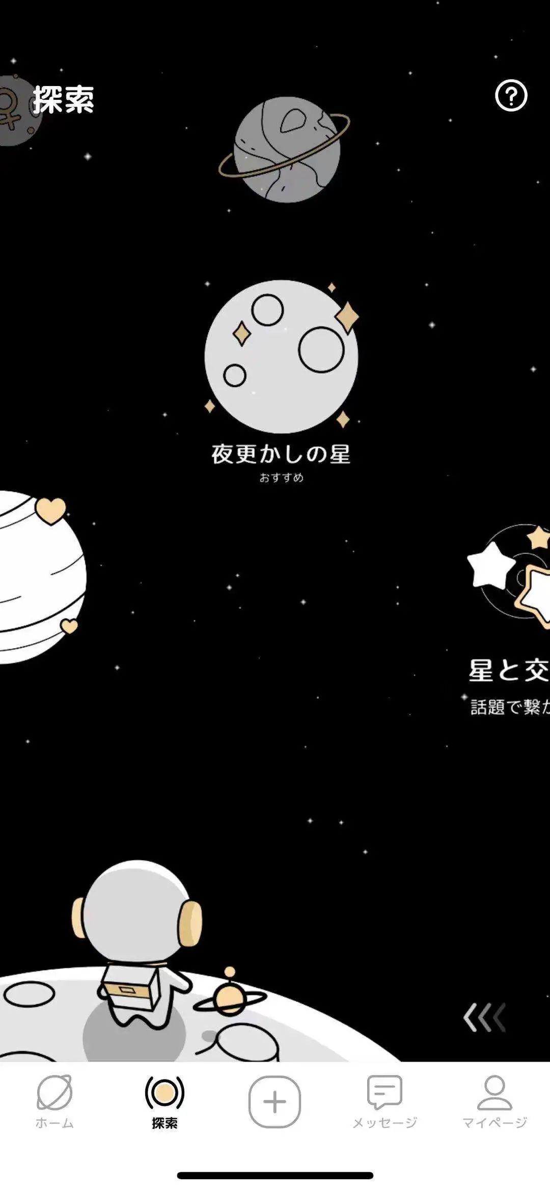 GRAVITY 中文译为“引力”,主打星球社交。产品整体打造一种宇宙、星际的神秘感,比如在注册时,首先要回答六个类似“五朵形状不一的星云,你更想触摸哪一朵?”的问题,然后通过无法言说的逻辑推演出用户的外在性格跟内在性格特点,虚无又神秘。