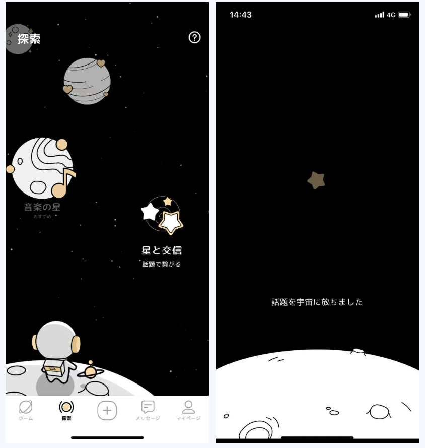 除了通过星球探索进入语聊房,GRAVITY 还提供语音通话、星之信件等社交功能,也是用户的付费点。语音通话是匿名的语音匹配,星之信件的玩法则跟 GRAVITY 的整体气质非常吻合,充满了随机的浪漫感。