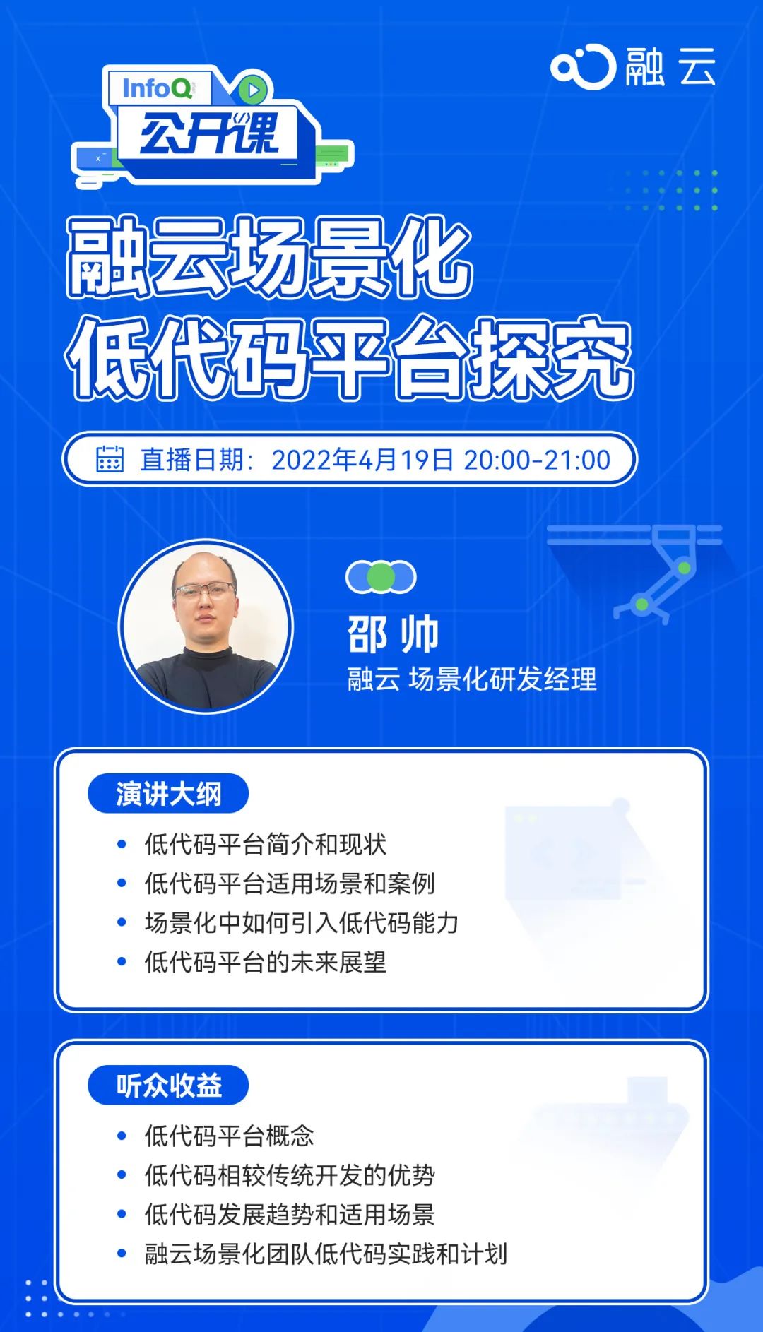 InfoQ 公开课开放报名,融云场景化低代码平台探究