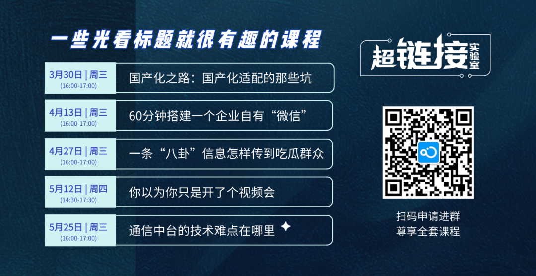 超链接实验室,是融云策划推出的 IT 系列直播课,携手行业专家,一起聊聊 IT 国产化、协同办公通信、通信中台、企业数字化的那些事儿。