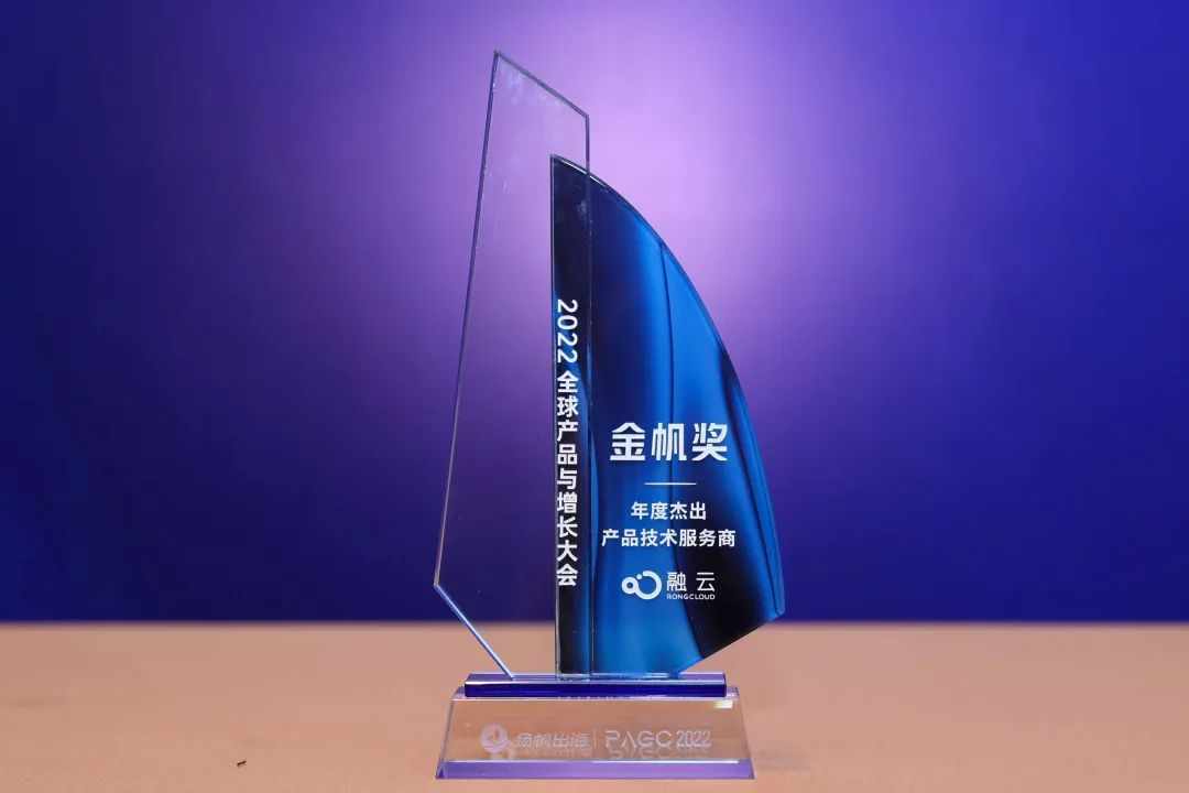 6 月 29 日,2022 PAGC 全球产品与增长大会在深圳举行。大会举办“金帆奖颁奖典礼”以表彰出海链条中的优秀参与者,融云荣膺“年度杰出产品技术服务商”。