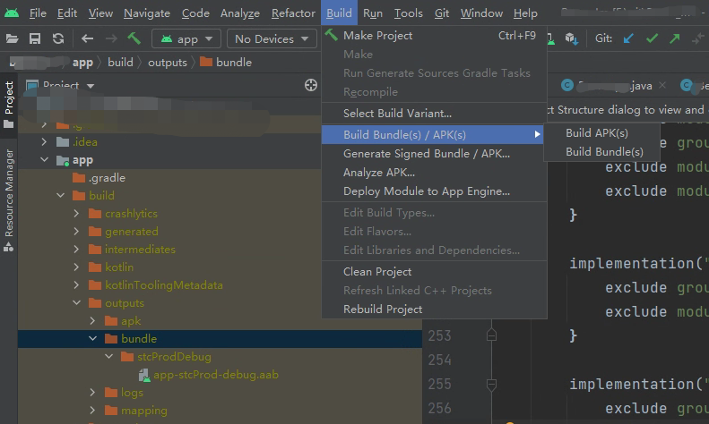 在开发阶段,我们可以使用 Build Bundle 来生成 AAB 文件。