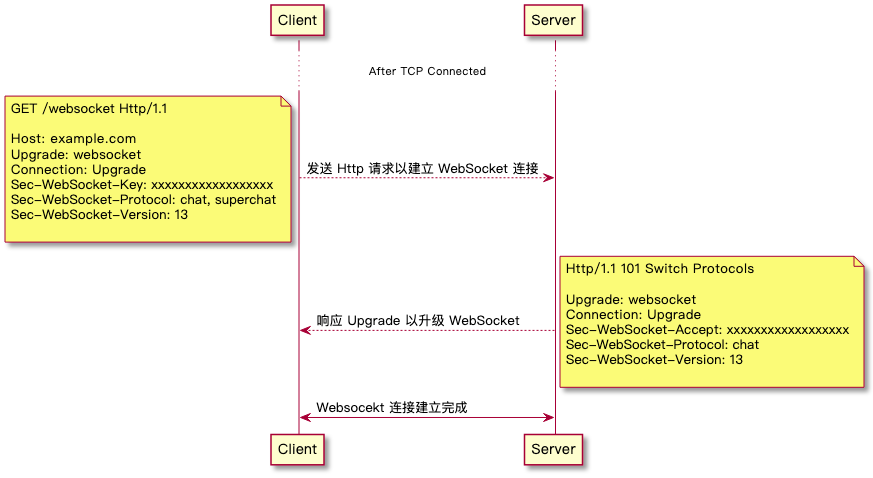 TCP 握手完成之后,通过 HTTP 报文向服务器协议提出升级申请,服务通过 HTTP response 报文来响应申请,至此 WebSocket 协商完成。比 TCP 多了两个动作,所以 WebSocket 的连接速度是慢于 TCP 的。