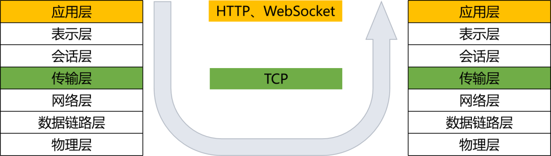 先看一下 OSI 参考模型,TCP 是 4 层协议,WebSocekt 是 7 层协议,这些其实就是 OSI 参考模型里的层级概念。