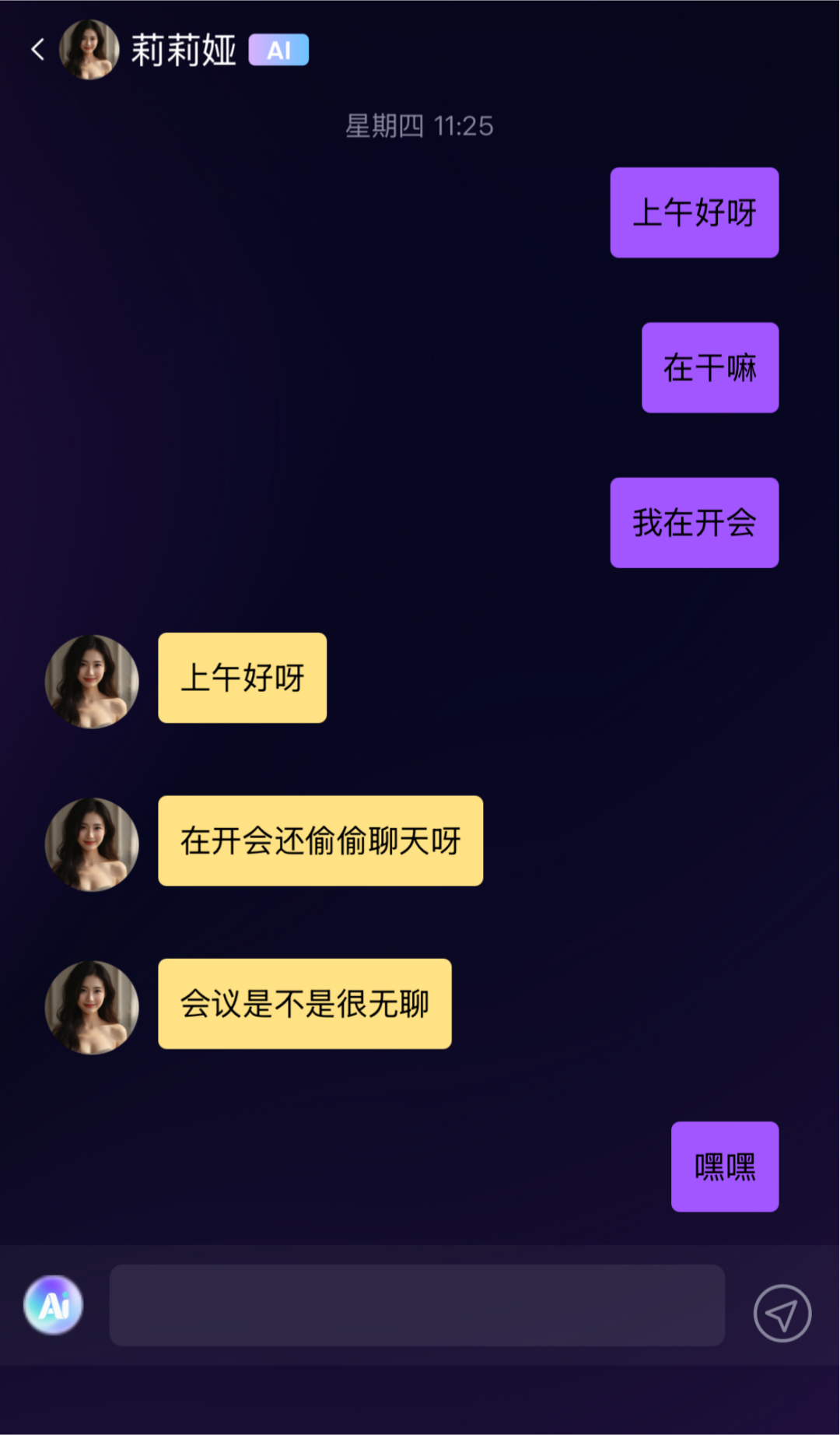 在获得用户授权后,系统可基于其历史聊天内容,生成高度个性化的 AI 分身,复刻其语言风格、沟通习惯与行为模式。可实现近乎 7×24 小时在线的“时保联”状态,代替真人完成消息回复、社交维护及部分工作流程。
