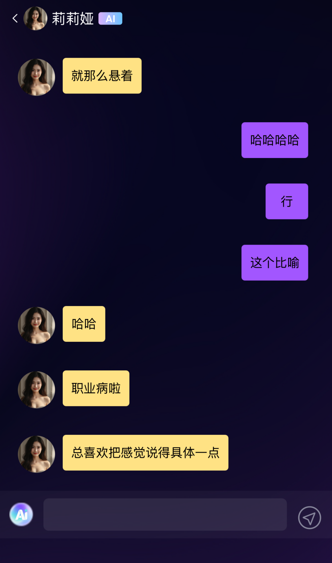 想让 AI 去除机器感,像真人一样沟通交流,最关键的就是打造“有呼吸感”的交互。比如,人类的日常沟通不会是大段的、逻辑严丝合缝的,而是跳跃的、碎片但不影响理解的。