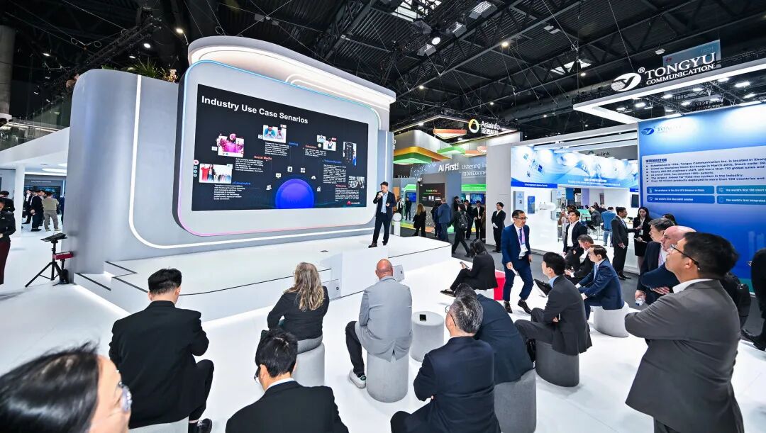 在 MWC 2026 华为展区的“Open Speech”环节中,融云全球解决方案负责人黄河发表了题为《超越连接:从通信平台到智能工作生态》的演讲。