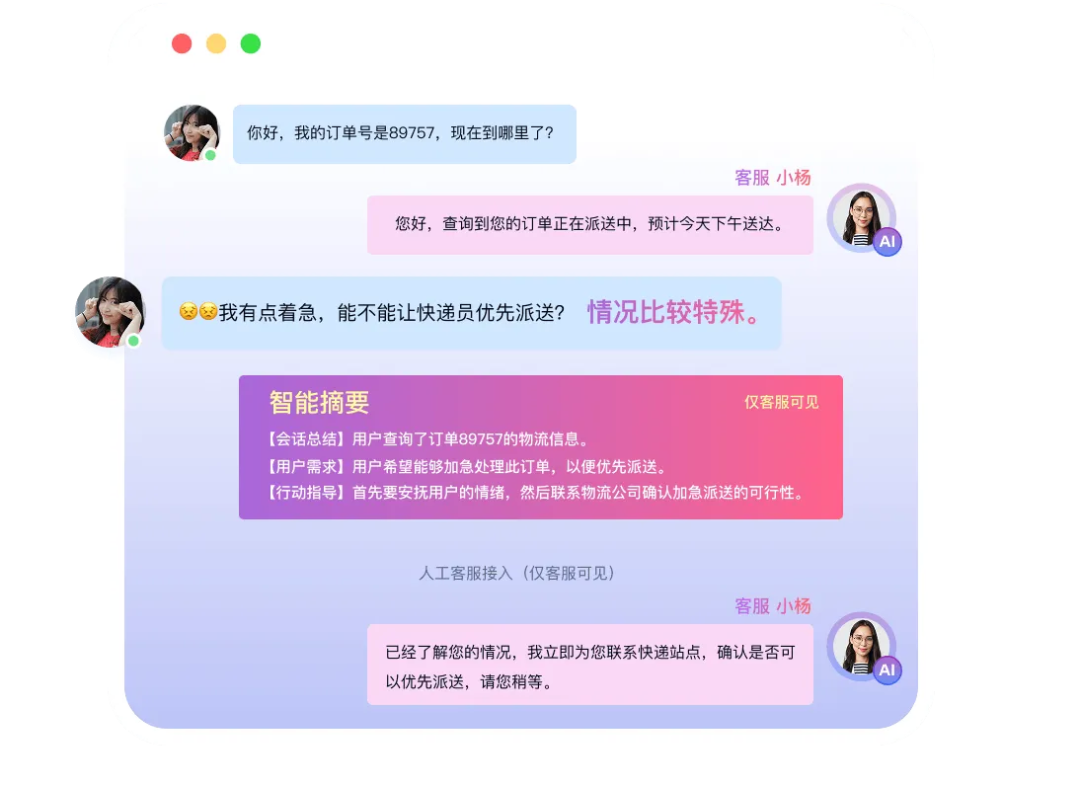 融云能力:提供 AI 客服分身管理,支持人工坐席实时监控与无缝介入。