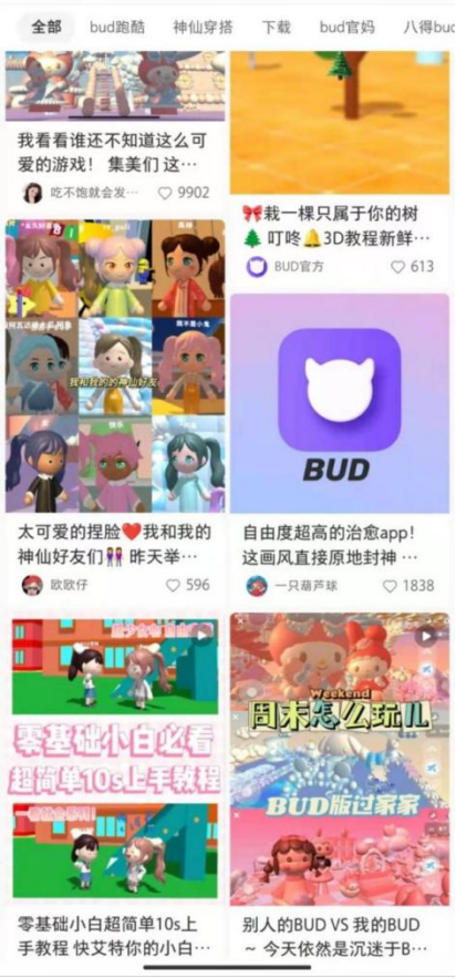 很多用户乐于将自己的在 BUD 上获得的体验以各种形式分享出去,他们或者发布自己的创作录屏,或通过剪辑和配音,借 BUD 的虚拟人物来演绎故事情节。