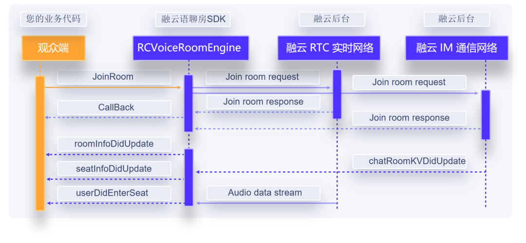 开发者接入一个 SDK,便得到一个内置了房主、发言者和观众三种角色,所有用户麦位信息同步,上麦、下麦、锁麦等系列麦位管理能力,供用户文字沟通的公屏消息,以及私信、礼物、音效等提升产品活跃度功能的整体解决方案。