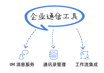 一个完整的企业沟通工具(以下简称企业 IM),需要支持以下几个功能:IM 消息服务、通讯录管理、工作流集成。