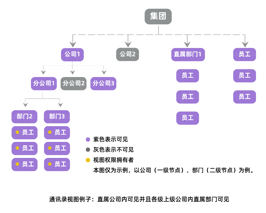上述场景所描绘的情况,很多企业都曾出现或正在经历。所以,为了保护重要信息不被泄漏,以及高管尽可能不被无效信息打扰,企业通讯录需要具备更完善的权限管理功能。